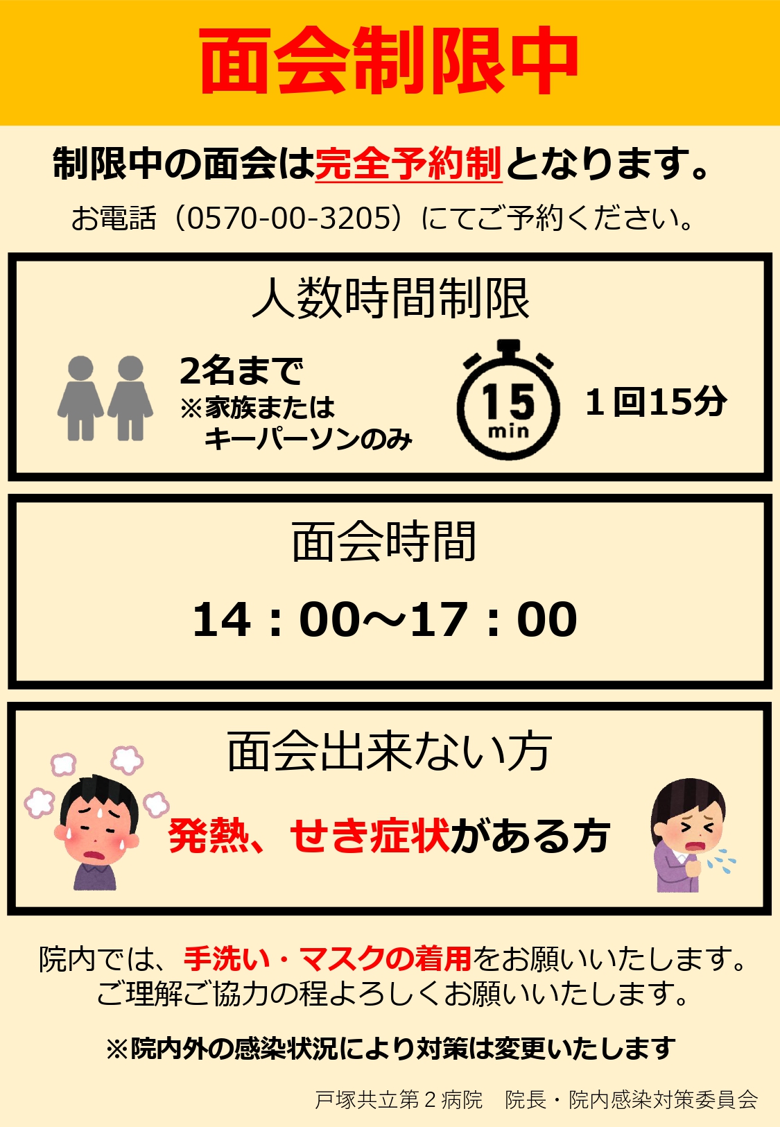 ご面会できる方は、風邪症状のない中学生以上の方3名までとし、1回30分の時間制限付きとなります。